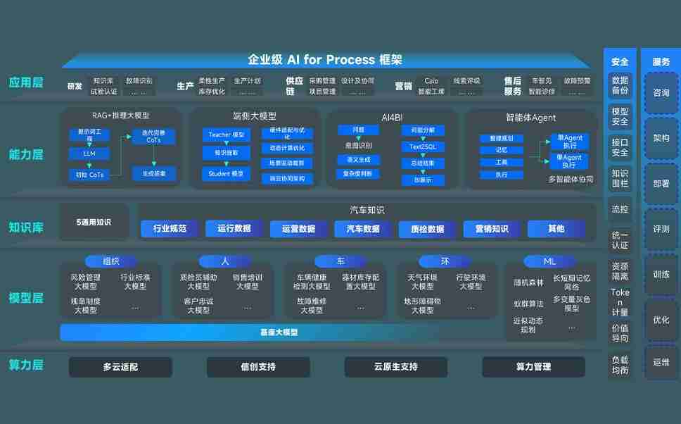 尊龙凯时问学智车解决方案是一套基于AI技术的汽车行业智能化系统,,,覆盖从底层算力到顶层AI应用的全栈方案。。方案由算力层、、、模型层和应用层组成:算力层,,,,方案支持多种一体机配置,,,具备云端灵活部署、、、多云适配以及动态优化计算资源的能力;模型层,,尊龙凯时问学平台版提供了企业级AI应用一站式构建与管理平台,,,支持基于后训练强化技术的汽车企业专属模型的训练、、、、评测和运营;应用层,,,,尊龙凯时问学DeepSeek版提供包括超级员工、、、智能招采、、、智能营销、、智能客服、、、、AI for BI等一系列解决方案,,,,可助力汽车行业实现数字化转型,,,让管理更智能、、、响应更敏捷。。